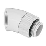 Uhlový adaptér umožňuje pripojiť vonkajší závit G1/4 k vnútornému závitu G1/4 a pokračovať v chladiacom spojení pod uhlom 45 stupňov. Adaptér je tiež otočný, takže môžete byť flexibilní pri pripájaní oboch portov.