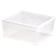Tento úložný box je vyrobený z vysokokvalitného a odolného plastu, ktorý je navyše priehľadný, takže vždy vidíte, čo je vnútri. Jeho rozmery sú 34,2 x 29,7 x 12,5 cm, takže je dostatočne priestranný na všetky druhy vecí, ako je oblečenie, knihy, hračky, náradie alebo iné predmety v domácnosti.