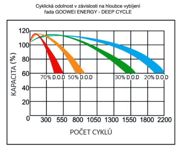 Na dosiahnutie optimálnej životnosti batérie pri častom cyklickom vybíjaní je potrebné dodržiavať maximálnu prípustnú hĺbku vybitia 80 % D.o.D. (Depth of Discharge) uvedenú v norme EN 61044.