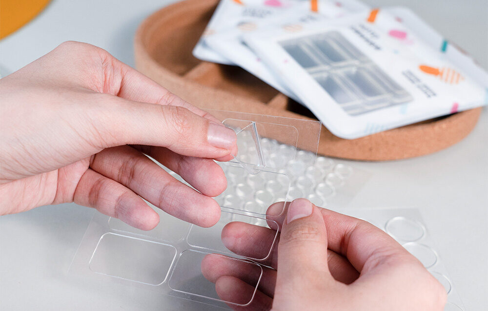 Súčasťou balenia sú pásky pripravené na použitie v 2 veľkostiach. V súprave sa nachádza 81 okrúhlych kusov pásky. Okrem toho už nemusíte mať po ruke nožnice. Jednoducho odlepte príslušný kus a potom ho použite kdekoľvek. Pripevňovanie predmetov ešte nikdy nebolo také jednoduché!