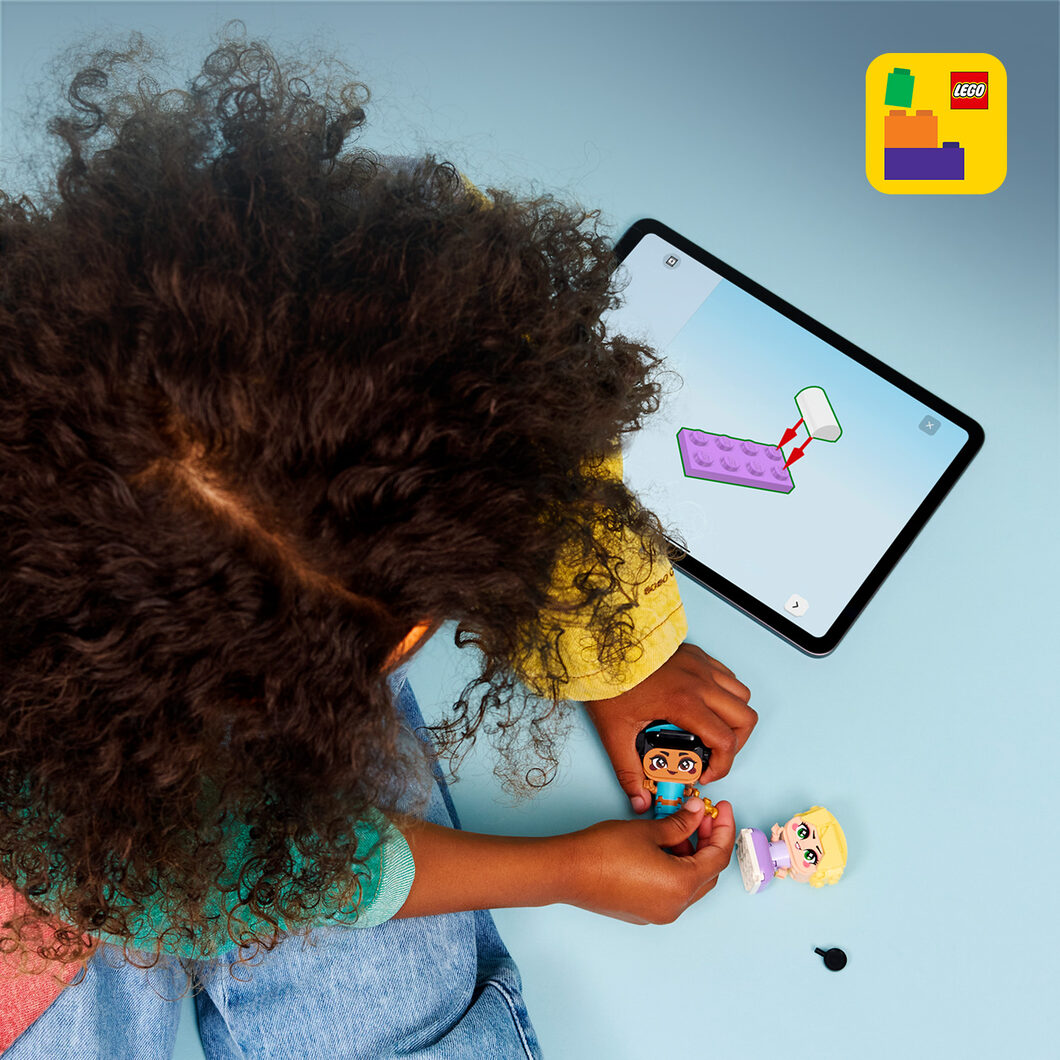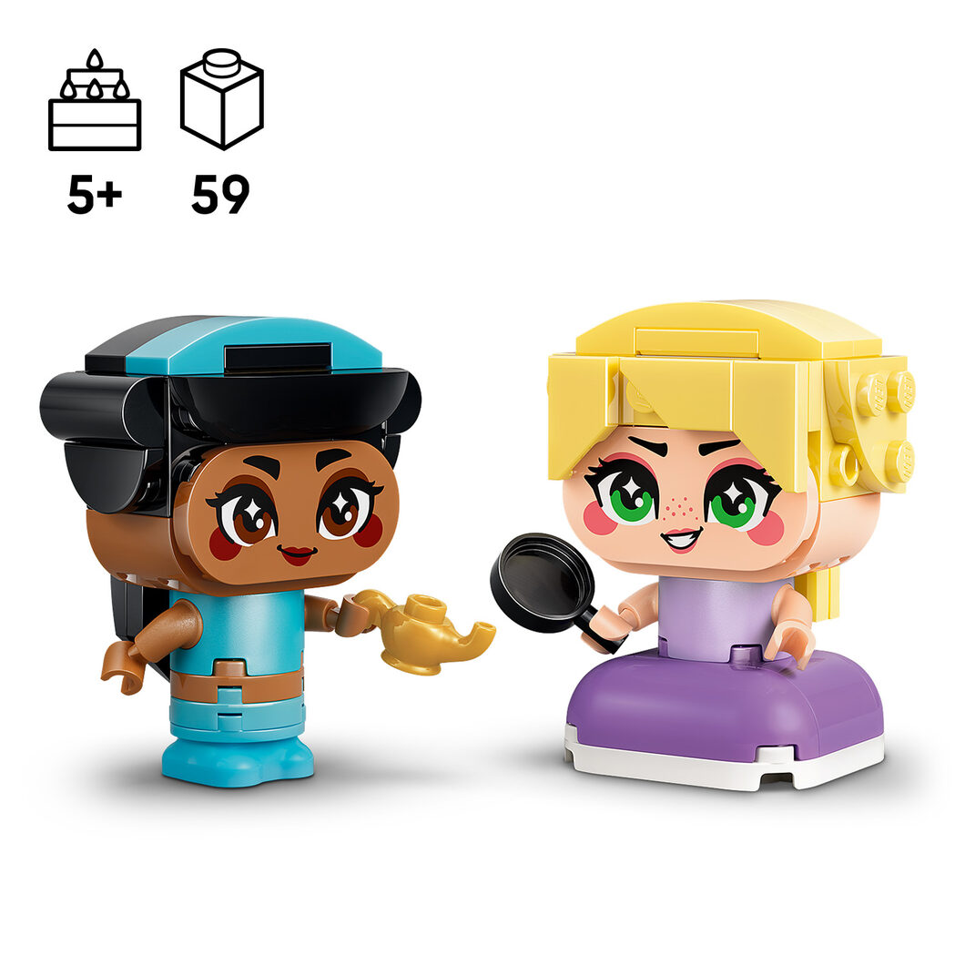 Poteš deti od 5 rokov so stavebnicou LEGO® | Disney Princess Mini Jasmína a Locika (43303). Filmové postavičky Jasmína a Locika s doplnkami, ako je čarovná lampa a panvica, inšpirujú deti k vymýšľaniu príbehov a živej hre. Každá princezná má pohyblivé ruky a môže držať svoje príslušenstvo. Modely princezien sa skvele hodia aj na vystavenie v detskej izbe a sú súčasťou zberateľskej série, ktorá zahŕňa aj ďalšie Disneyho princezné z kociek. Malí fanúšikovia Disneyho princezien budú skákať od radosti z tejto rozkošnej sady, ktorá je skvelým narodeninovým darčekom pre dievčatá a chlapcov a dá sa kombinovať s ďalšími sadami LEGO | Disney (predávajú sa samostatne). Deti si užijú jednoduché a intuitívne staviteľské dobrodružstvo s návodmi v aplikácii LEGO Builder. V nej môžu zväčšovať a otáčať modely v 3D, ukladať svoje stavby a sledovať svoj pokrok. Stavebnica obsahuje 59 dielikov.