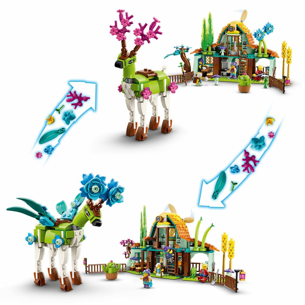 Sady LEGO® DREAMZzz™ (71459) Stajňa snov inšpirované televíznym seriálom zavedú deti od 8 rokov do čarovného sveta plného prírodných detailov a nových kamarátov, kde sa stretávajú s bájnymi bytosťami a starajú sa o čarovné kvety. Je plná úžasných detailov, ktoré podnietia detskú predstavivosť. Deti si zamilujú skúmanie funkčného veterného mlyna, stodoly (s otváracími oknami a dverami) a stretnutie s novými rozprávkovými kamarátmi, ako sú 2 bytosti zo sveta snov. 1 stavebnica,2 možnosti stavania Stavebnica umožňuje 2 možnosti stavania. Deti si môžu vybrať, či jeleňa ozdobia ako lietajúceho pegasa alebo krásneho ochrancu lesa. Užijú si tak dvojnásobnú zábavu a budú rozvíjať svoju kreativitu. Fantastické detaily Jeleň má pohyblivú hlavu a nohy, takže sa ľahko prispôsobí hre, a namiesto parohov mu môžete nasadiť kvety zo stajne. Súčasťou sú prepracované minifigúrky Izzie, Zoey, Coopera a pani Castillovej.