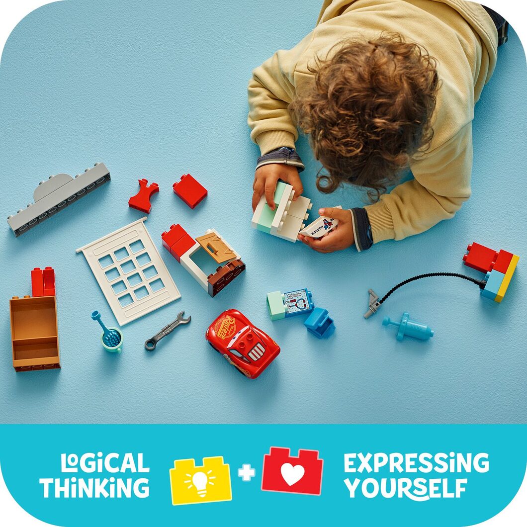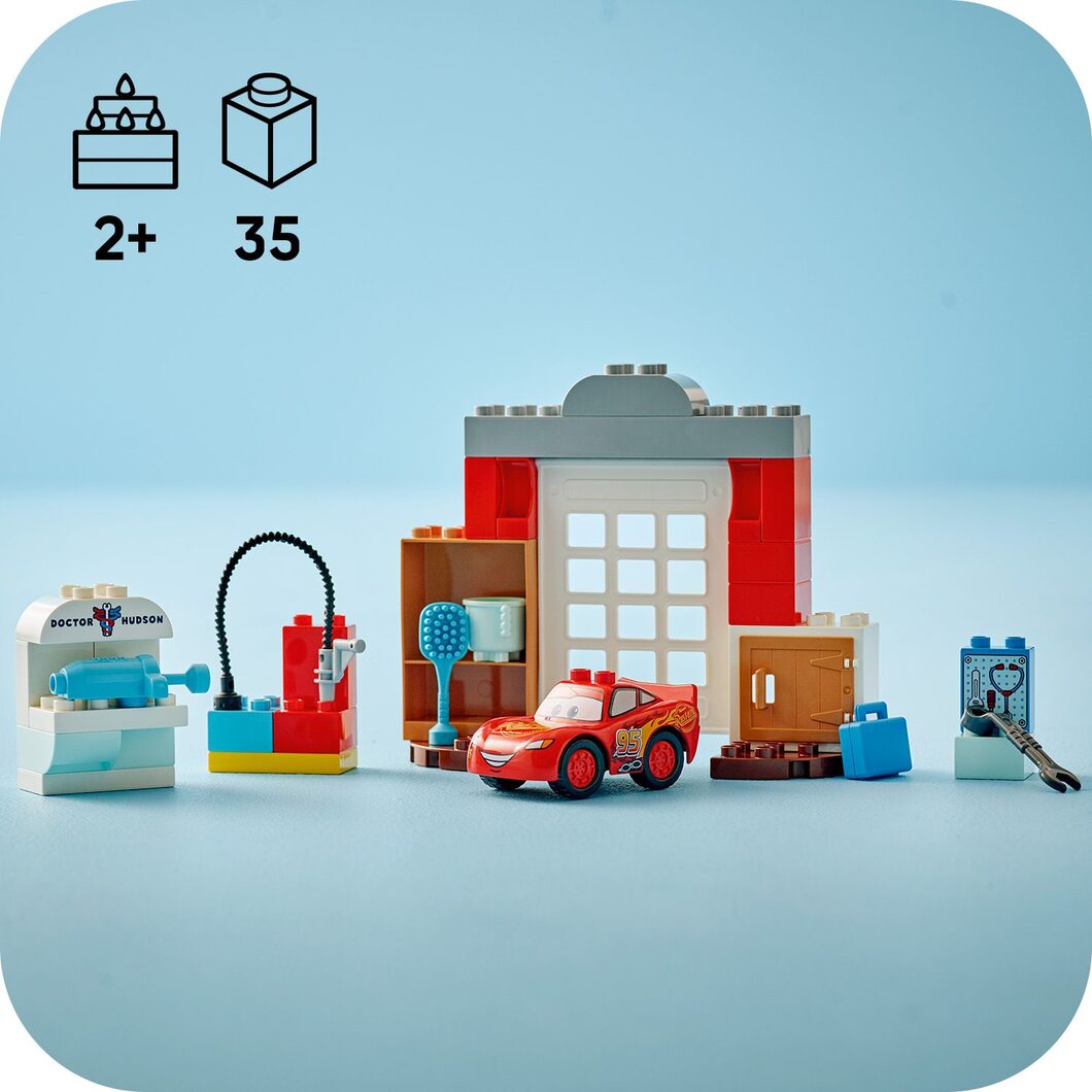 Technické špecifikácie pre produkt LEGO® DUPLO® | Disney™ 10456 McQueen a návšteva v garáži doktora Hudsona sa môžu zmeniť bez výslovného upozornenia. Obrázky pre produkt LEGO® DUPLO® | Disney™ 10456 McQueen a návšteva v garáži doktora Hudsona majú iba informatívny charakter.