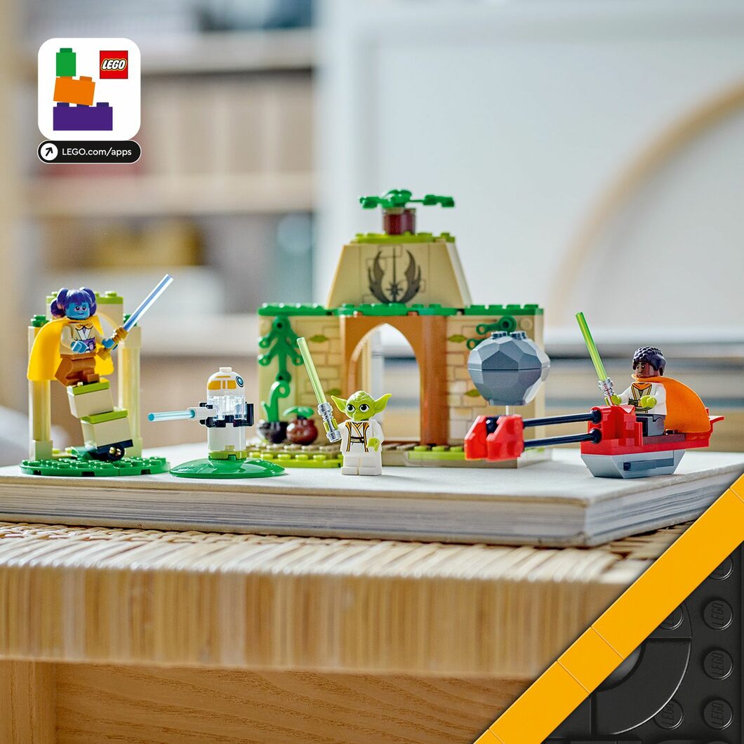 - 3 minifigúrky LEGO® Star Wars™ - Lys Solay a Kai Brightstar so stredne veľkými nohami a Majster Yoda s malými nohami. Každá figúrka má svoj vlastný svetelný meč na výcvik Jediov