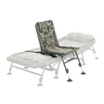 Toto jedinečne navrhnuté kreslo umožňuje príležitostné používanie ako ľahké a rýchlo skladacie kreslo strednej veľkosti so štyrmi teleskopickými nohami. V priebehu niekoľkých sekúnd ho možno nastaviť tak, aby sa dalo položiť na ležadlo so spacím vakom dozadu. Špeciálne tvarovaná zadná časť rámu sa prispôsobí celej ploche ležadla a zabraňuje lokálnemu poškodeniu výplne spacieho vaku alebo matraca ležadla. Lehátko je vybavené hrubým polstrovaním s pohodlným flísovým poťahom v jedinečnom dizajne CamoCODE. Je vybavené samonosnými výsuvnými nohami a protišmykovými nožičkami.Prepravnú tašku vhodnú pre tento výrobok nájdete v časti s parametrami. Táto taška nie je súčasťou balenia, je to samostatný výrobok.