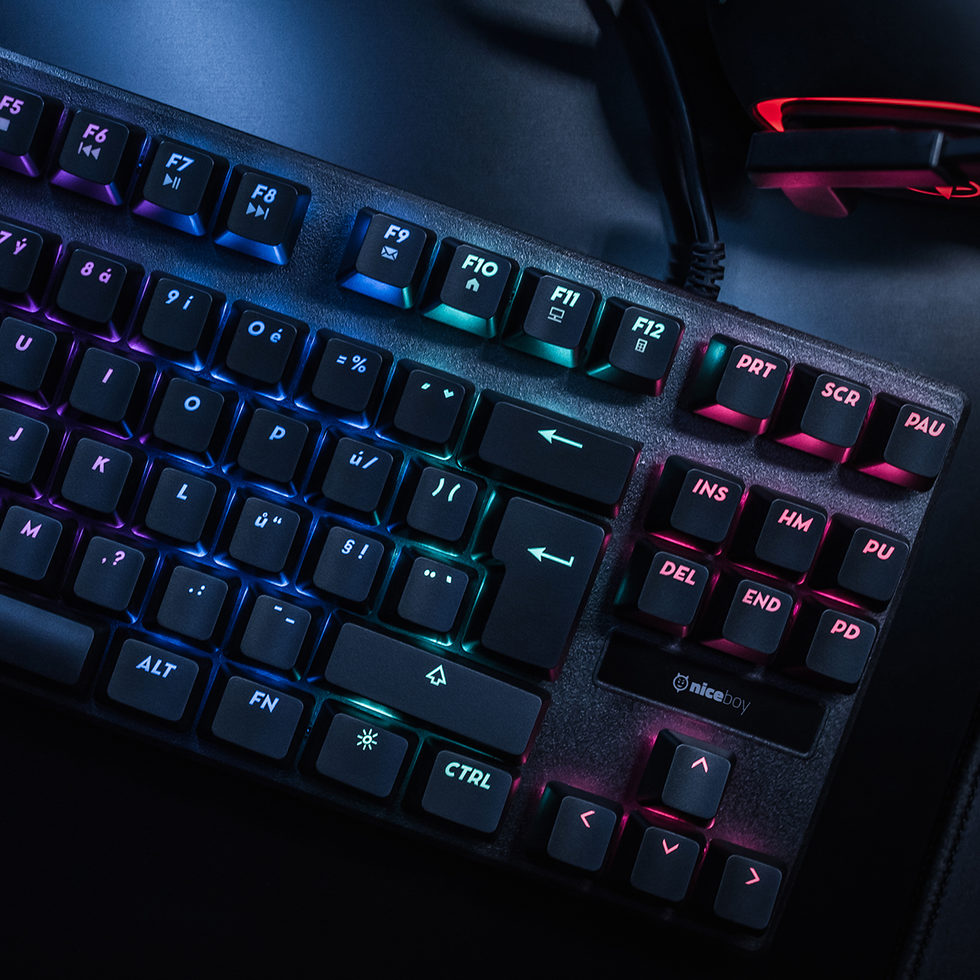 Elegantné podsvietenie RGB a dynamické efektyNiceboy ORYX K300X na prvý pohľad zaujme elegantným RGB podsvietením. Klávesnica vám tiež dáva na výber zo 7 dynamických efektov, ktoré dodajú vášmu hernému setu štýl. Nastavenie jasu vám umožní nastaviť ideálnu svietivosť pre daný moment. Ideálny doplnok každej hernej zostavy. |