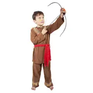 Štýlový karnevalový kostým s indiánskym motívom! Hnedý kostým vo veľkosti M je určený pre chlapcov vo veku 6-8 rokov. Balenie obsahuje vrchný diel s indiánskym vzorom, nohavice a červenú šatku. Oba diely sú zdobené strapcami. Staň sa s týmto kostýmom najväčším frajerom na karnevalovej párty a ohrom všetkých svojich kamarátov!
