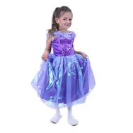 Krásny dievčenský kostým pre všetky snehové princezné! Kostým vo veľkosti S je určený pre dievčatá vo vekovom rozmedzí 4 - 6 rokov (100 - 116 cm). Veľkosť sa môže líšiť od obrázku na obale. Kostým je ušitý v čiernej a modrej farbe, v hornej časti zdobený potlačou, okolo pása má zlaté lemovanie. Súčasťou je aj ružový plášť s mašľou.