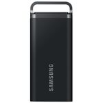 Prenosný SSD disk Samsung T5 EVO ponúka kapacitu 2 TB a spoľahlivý výkon s rozhraním USB 3.2 Gen 1 (5 Gb/s). Kompaktné rozmery 40 × 95 × 17 mm a hmotnosť 102 g zaručujú jednoduchú prenosnosť. Disk dosahuje rýchlosť sekvenčného čítania a zápisu až 460 MB/s, je odolný voči pádu z výšky až 2 metrov a podporuje 256-bitové hardvérové šifrovanie AES na bezpečné ukladanie dát. Je kompatibilný so zariadeniami so systémami Windows®, macOS® a Android™. Disk sa spravuje pomocou softvéru Samsung Magician.