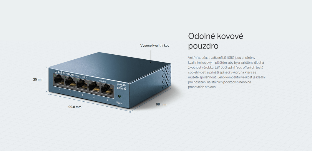 Technické špecifikácie pre produkt TP-LINK LS105G sa môžu zmeniť bez výslovného upozornenia. Obrázky pre produkt TP-LINK LS105G majú iba informatívny charakter.