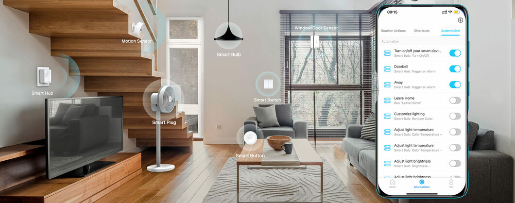 S inteligentnými akciami budú vaše zariadenia Tapo bez problémov spolupracovať a vytvoria inteligentnejší domov. Spustite vypínač pri detekcii pohybu pomocou snímača pohybu Tapo. Zoskupte svetlá a zariadenia do jedného vypínača a ovládajte celú miestnosť jediným dotykom.