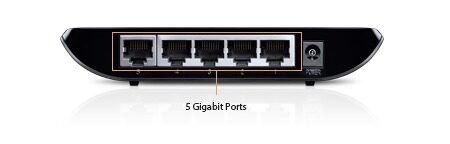 - 5 gigabitových portov RJ45 s podporou automatického vyjednávania a automatického MDI/MDIX
