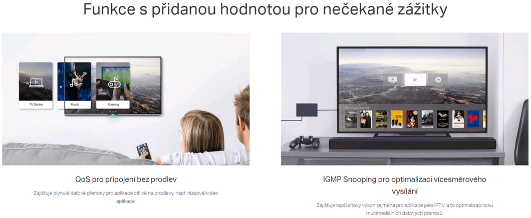 - Podpora QoS (IEEE 802.1p/DSCP) a IGMP snooping