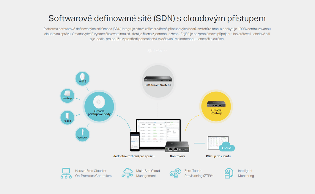 - Integrácia do platformy Omada SDN:Zero-Touch Provisioning (ZTP)**, centralizovaná správa cloudu a inteligentné monitorovanie.