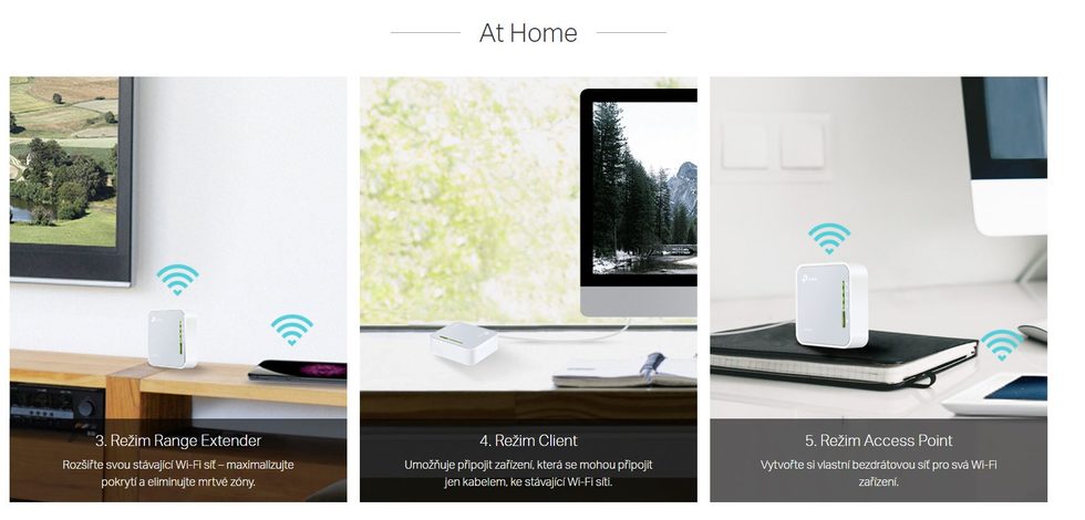 - Jeden prepínač pre rôzne režimy - Ideálne pre Wi-Fi doma, v hotelovej izbe alebo na cestách