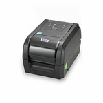 Stolová termotransferová tlačiareň čiarových kódov s presnou kalibráciou a registráciou potrebnou na tlač najmenších štítkov.