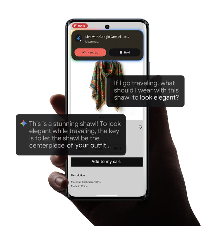 Umelá inteligencia Gemini od spoločnosti Google Integrovaná umelá inteligencia Gemini od spoločnosti Google pomáha pri vyhľadávaní informácií, zvyšuje produktivitu a uľahčuje každodenné používanie telefónu. |